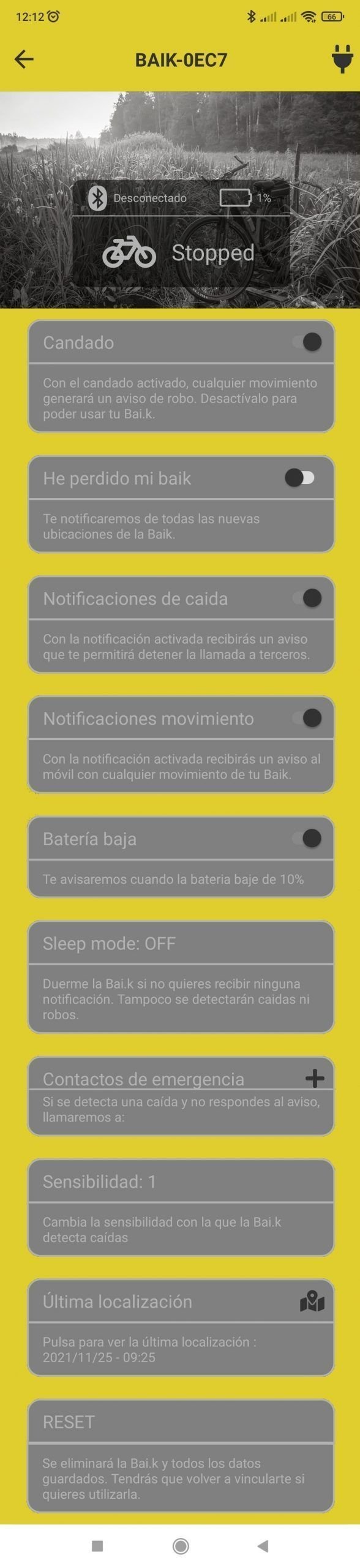 Activado este modo, el sistema te avisará de cuando te quede sólo un 10%. Este aviso se envía vía bluetooth por lo que tendrás que estar conectado a tu Bai.k.